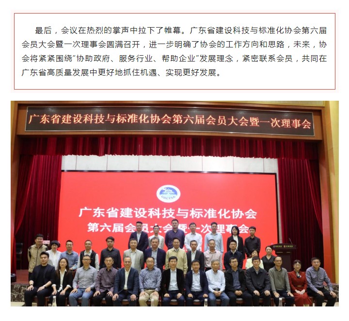 廣東省建設科技與標準化協會第六屆會員大會暨一次理事會會議順利召開